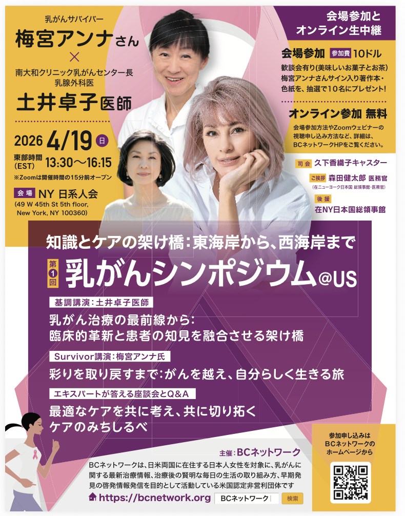 「BCネットワーク (Young Japanese Breast Cancer Network)」から「第1回乳がんシンポジウム@US」のご案内!